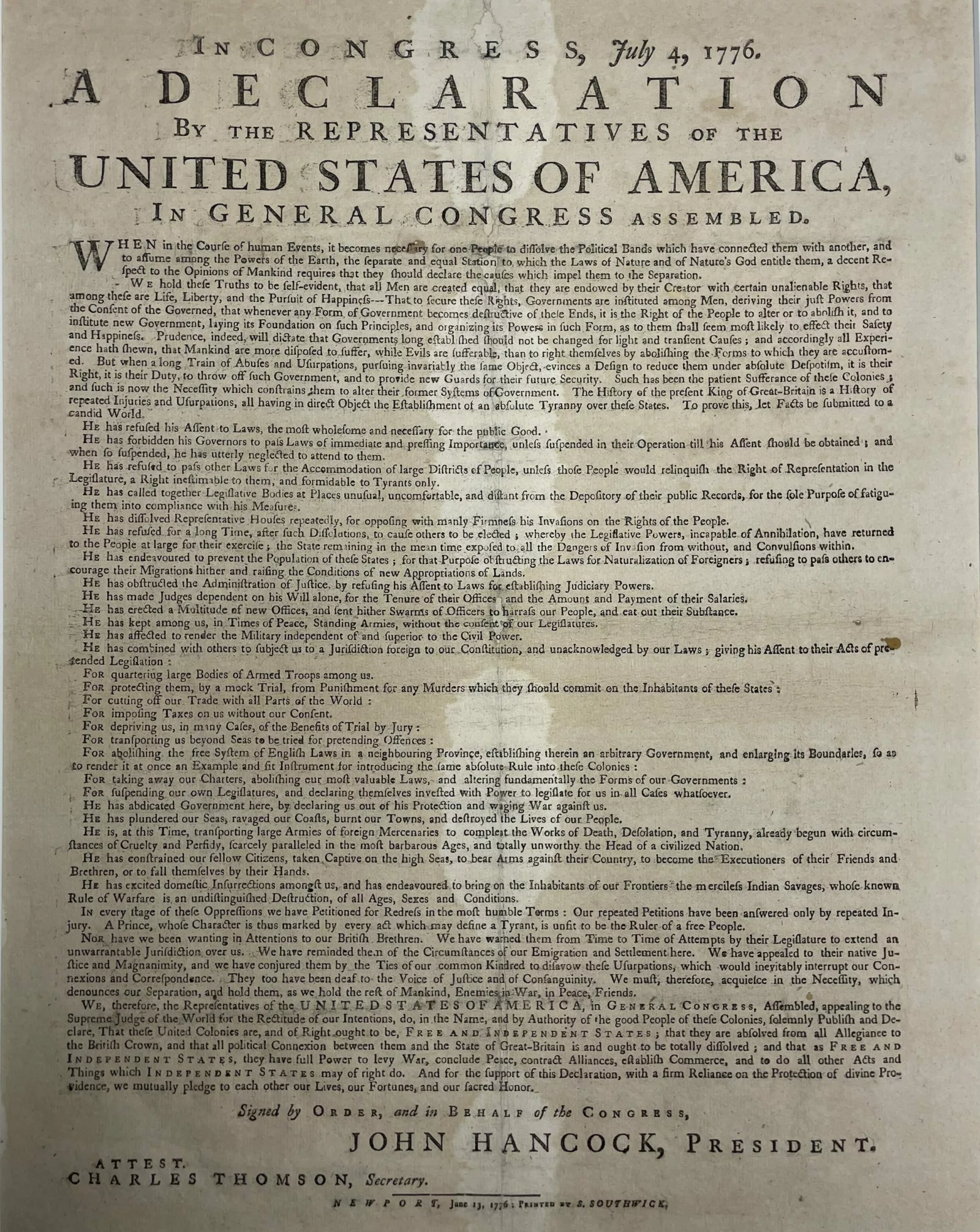 This exhibition, anchored by a rare early copy of the Declaration of Independence, invites visitors to survey the words of the founding document of the United States, to consider some of the surprising ideas behind those words, and to trace their circulation and impact in the age of the American Revolution.