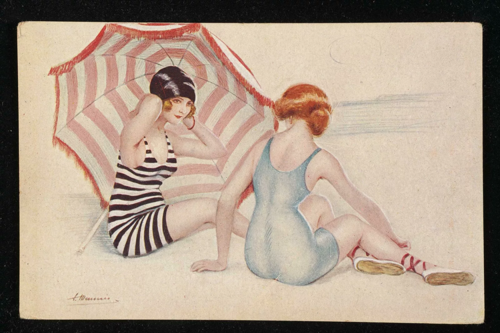 Despite the frequent focus on women’s fashion and romantic scenes, postcard artists such as those featured in the Monroe Collection were primarily men. Even in the male-dominated scene of the early 20th century, female artists still published exceptional work. They include Mela Koehler and Maria Likarz-Strausz, members of the avant-garde Vienna Workshop collective and forerunners of the Art Deco movement; and Suzanne Meunier, a painter of pin-up art who contributed to French weekly La Vie Parisienne. Others worked as commercial book illustrators, such as sisters May and Ada Leonora Bowley.